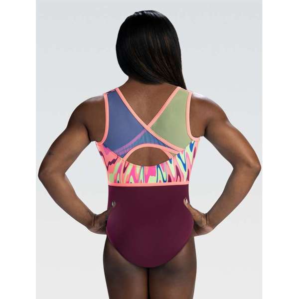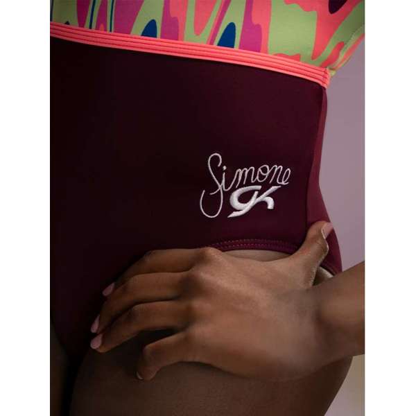 Le léotard sans manches Simone Biles Unrivaled vous permet d'exprimer votre fluidité avec un talent artistique captivant. Conçu en collaboration avec Simone Biles, ce léotard unique arbore un motif abstrait vibrant aux tons citron vert, corail et saphir sur le corsage, créant une énergie visuellement dynamique. Une base bordeaux foncé contrastante apporte une touche de profondeur sophistiquée au design. Le dos, soigneusement conçu, présente une découpe élégante et des bretelles croisées dans des tons coordonnés de bleu et de citron vert, assurant un maintien sûr et élégant. Confectionné dans nos tissus haut de gamme SubFuse, Primatex et Mesh, ce justaucorps offre un confort exceptionnel, une extensibilité résistante et une tenue parfaite pour une pratique intense. Disponible des tailles CS à AXL, le léotard Simone Biles Unrivaled incarne la force artistique et l'esprit d'innovation de Simone, vous inspirant à trouver votre propre rythme et à briller par votre individualité.