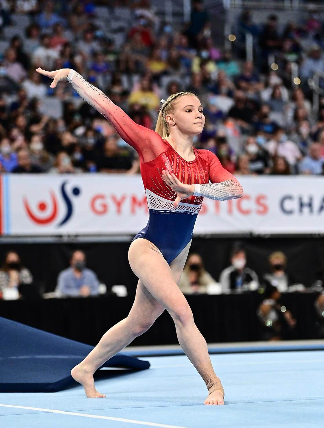 The leotard that led to history. This bold red, white, and blue replica brings back the look Jade Carey wore at the 2021 U.S. Championships——her final competition before competing for her spot in Tokyo. With patriotic pride and powerful presence, this leotard marked a defining moment in Jade’s journey to Tokyo. Recreated in detail, it’s a tribute to her resilience, focus, and the momentum that carried her to the world stage.